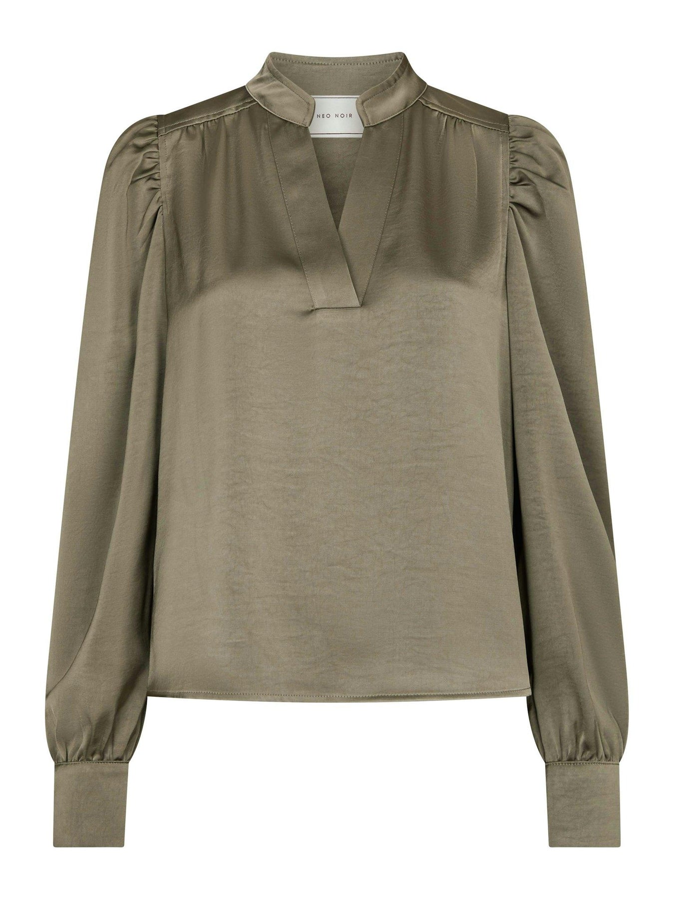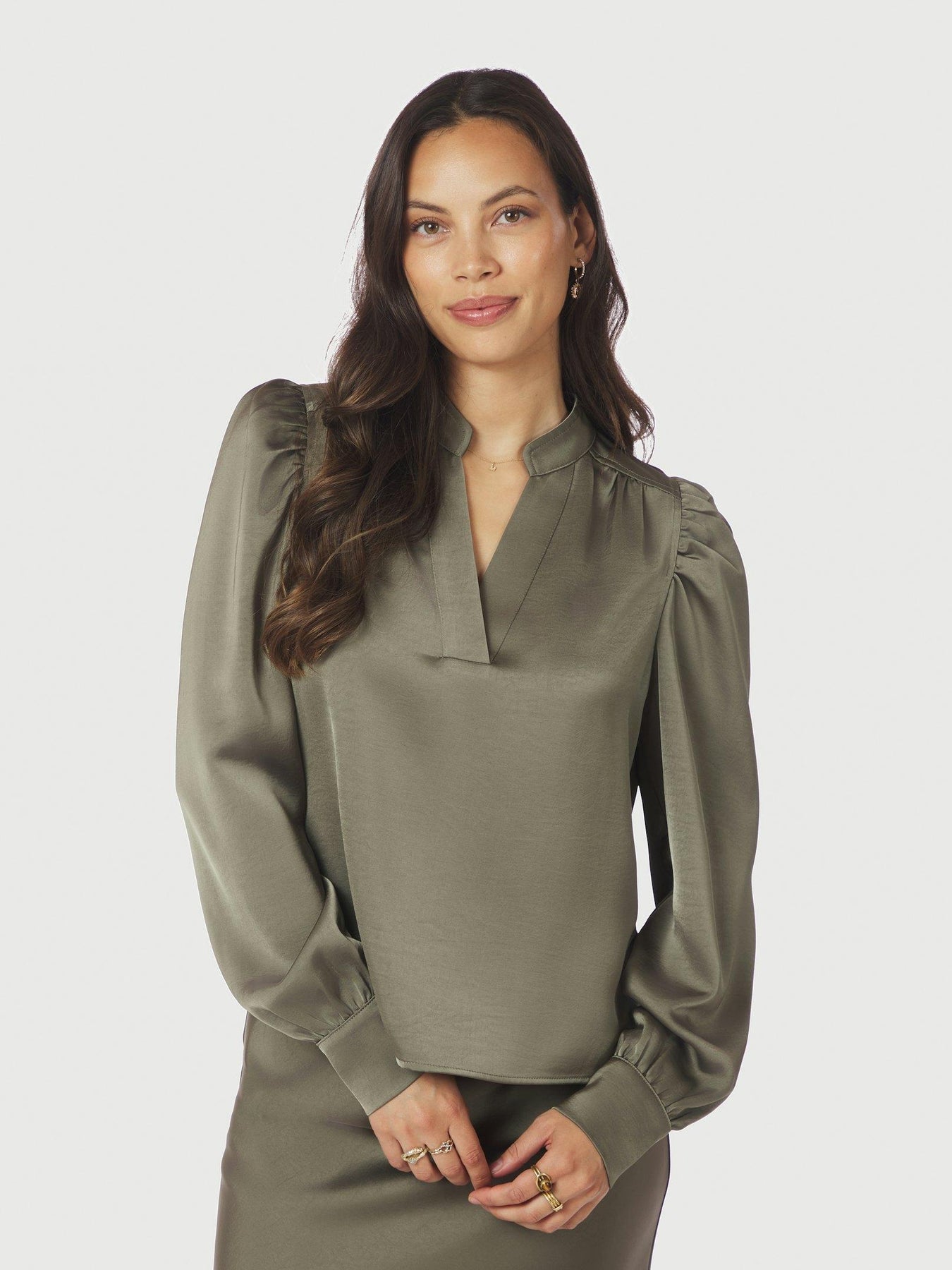 Pretty blouse with long puff sleeves and an open neckline at the front.